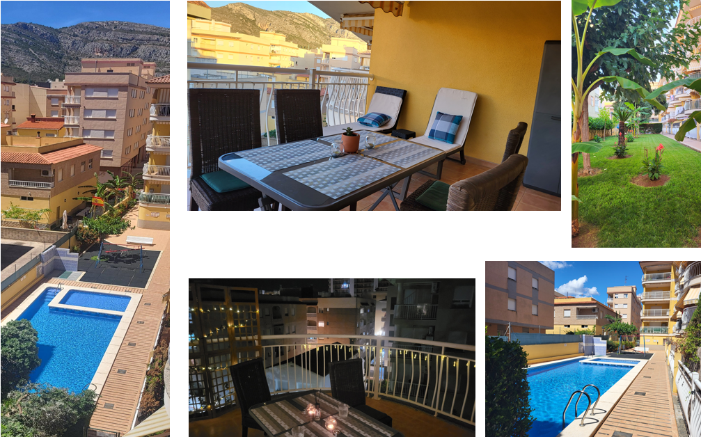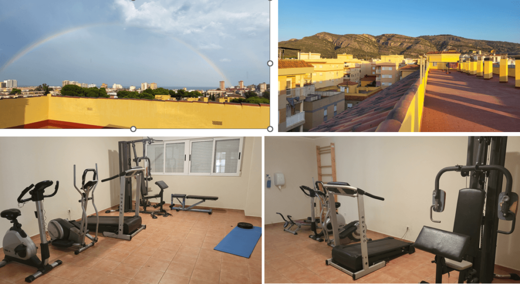 Okolica. Miasteczko, plaża Morro de Gos Salon Sypialnia z miejscem do pracy Główna sypialnia, z wyjściem na taras Taras i basen Kuchnia i łazienka Siłownia i widoki z dachu Zapytaj o dostępne terminy Okolica. Marina d'Or i Torre del Sal Plaża La Concha i Morro de Gos Ścieżka rowerowa (via Verde) i trasa spacerowa. Zapytaj o dostępne terminy
